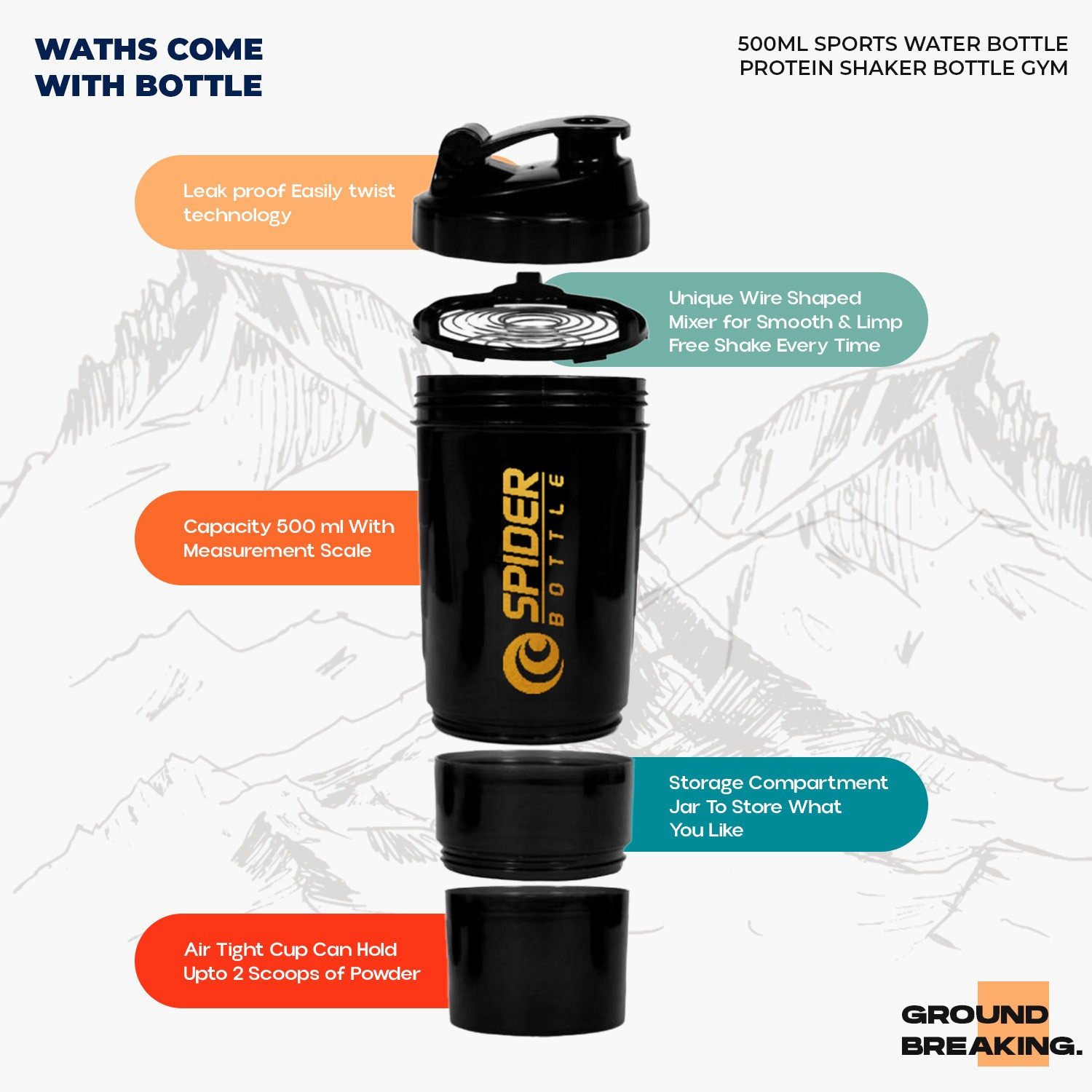 Spider Gym Bottle – Durable & Leak-Proof Sports Water Bottle (500 ml)