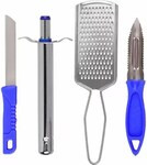 Stainless Steel Kitchen Combo – Gas Lighter, Knife, Peeler & Smooth Grater (Set of 4)