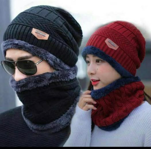 Multicolor Unisex Woolen Cap & Scarf – Cozy Winter Accessories (Combo of 2)