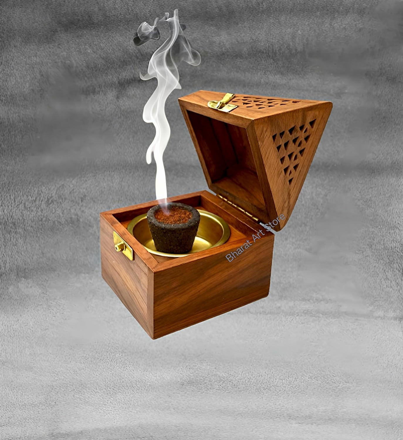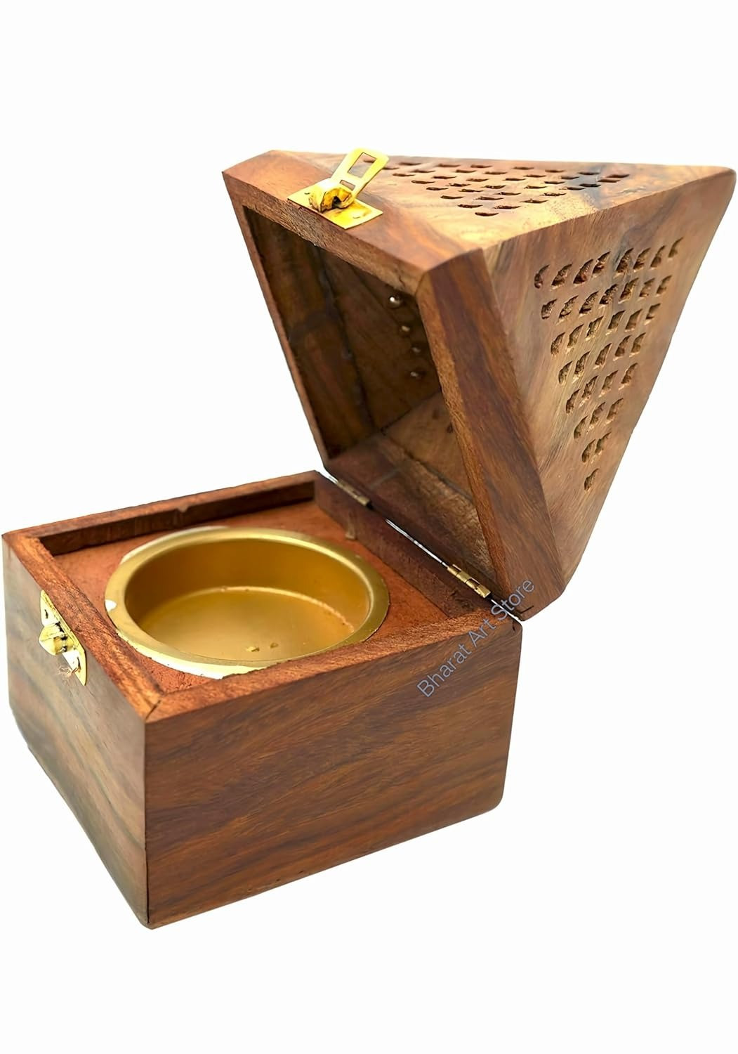 Pyramid Shape Wooden Incense Holder – Dhoop Batti, Agarbatti Stand, Dhoop Dani/Loban Cone